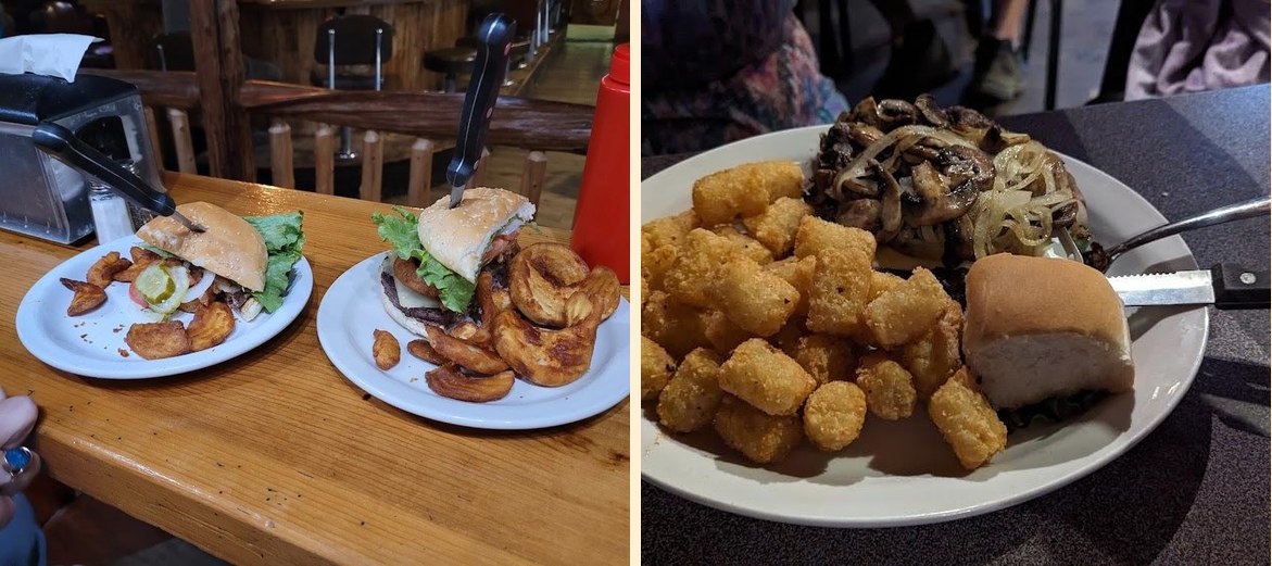 Don't miss the chicken sandwich, tater tots, and specialty burgers like the Bigfoot. For appetizers, deep-fried mushrooms and onion rings are popular. Grab a drink during happy hour for great deals.
